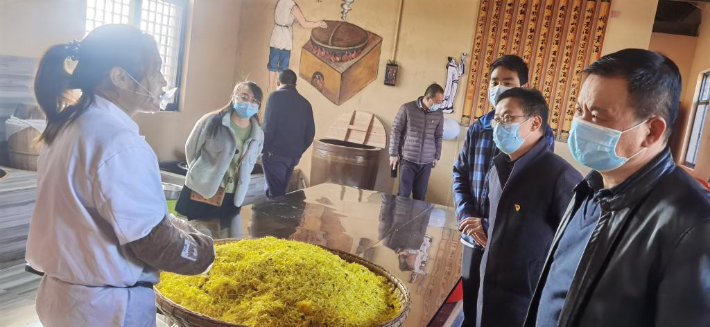 活动期间,在蒿口村参观了一些乡村振兴企业。在武当道菊产业园,对武当道菊的产品及产业发展,金志雄书记和太阳集团tyc33455专职组织员谢勇同志等人针对道菊的基源鉴定、产品的多元化等方面提出了自己的见解。另外,以徐靖老师为代表的无党派人士也参观了乡村振兴企业中的豆油筋生产车间、菊花酒和均州黄酒生产展示馆。针对他们的产品及工艺提出了自己的想法和建议,并积极采购特色产品。