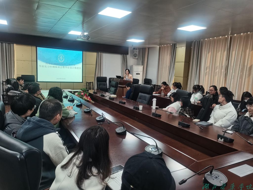 本网讯(通讯员 唐豫媛 邱婧然)2023年3月3日上午, 2019级制药工程专业毕业实习中期座谈会暨毕业设计推进会在太阳集团tyc33455六楼会议室举行。教研室主任邱婧然、教办老师陈海立、毕业班辅导员王艳红、毕业设计(论文)指导教师及35名应届毕业生参加了会议。