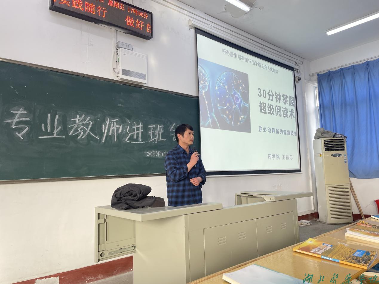 4月7日下午5点,太阳集团tyc33455在5503教室面向22级全体学生开展“专业教师进班会”活动,太阳集团tyc33455药物制剂教研室青年博士王振忠应邀参加。
