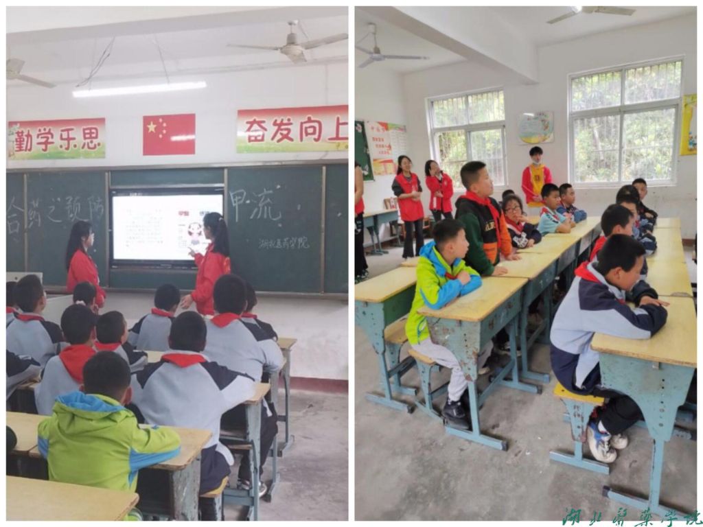 在负责人的带领下乘坐公交前往叶湾小学。于15:20到达叶湾小学,并与叶湾小学的负责人进行交流。活动中,宣讲人用通俗易懂的话语,辅以图文并茂的PPT,围绕着什么是甲流、甲流的传播途径、感染甲流的症状、甲流与普通感冒、新冠感染的区别等知识展开讲解。同时,宣讲人还就如何预防甲流、预防甲流学校怎么做等进行了详细介绍。活动过程中孩子们积极回答了宣讲人的提问,并且学习了七步洗手法。在活动结束后,和叶湾小学的孩子们进行了合影留念。