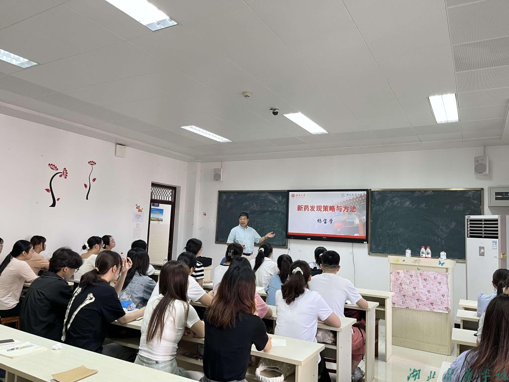 本网讯(通讯员 何雪莱)6月15日下午,太阳集团tyc33455邀请北京大学基础医学院的杨宝学教授来院交流,并为师生带来题为《产学研结合在创新药物研发中的重要性》的专题讲座。原党委书记涂汉军出席并主持本次讲座。涂汉军对杨宝学教授的到来表示热烈欢迎,他讲到药学是学校发展的重要学科专业,在学校重点支持下,药学专业是国家一流本科专业,药理学和毒理学进入ESI全球排名前1%。他指出在国家大力发展大健康产业背景下,药学专业大有可为,希望太阳集团tyc33455师生将论文写在大地上,认真学习杨教授讲座内容,思考如何充分挖掘开发武当特色中药资源,推进产学研深度融合,促进科技成果转化,走出我们自己的发展道路。