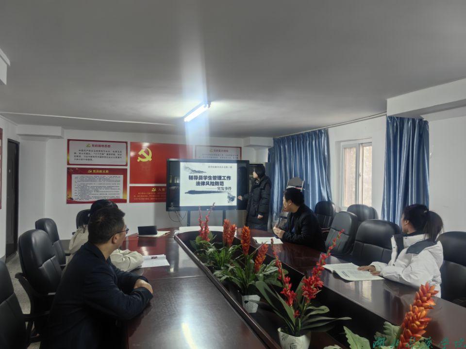 本次辅导员沙龙活动由辅导员徐璠婧主讲,指出学生管理的首要任务就是维持学生的稳定,没有稳定就没有一切。在维护学生平安稳定的基础上,才能进一步要求学生的专业课学习和综合素质的培养。要将学生突发的事故降到最低程度,了解掌握突发学生事件的应急处理。参会老师积极沟通交流,提出处置学生突发事件要做到,一、坚持一个中心,彰显人文关怀;二、把握两个原则,实现精准突破;三是处理好三个关系,保障和平稳定;四、开展思想工作,构建循环网络。
