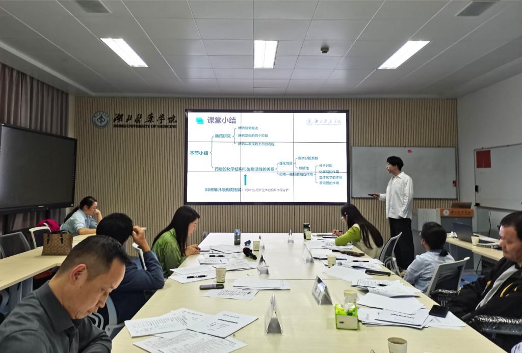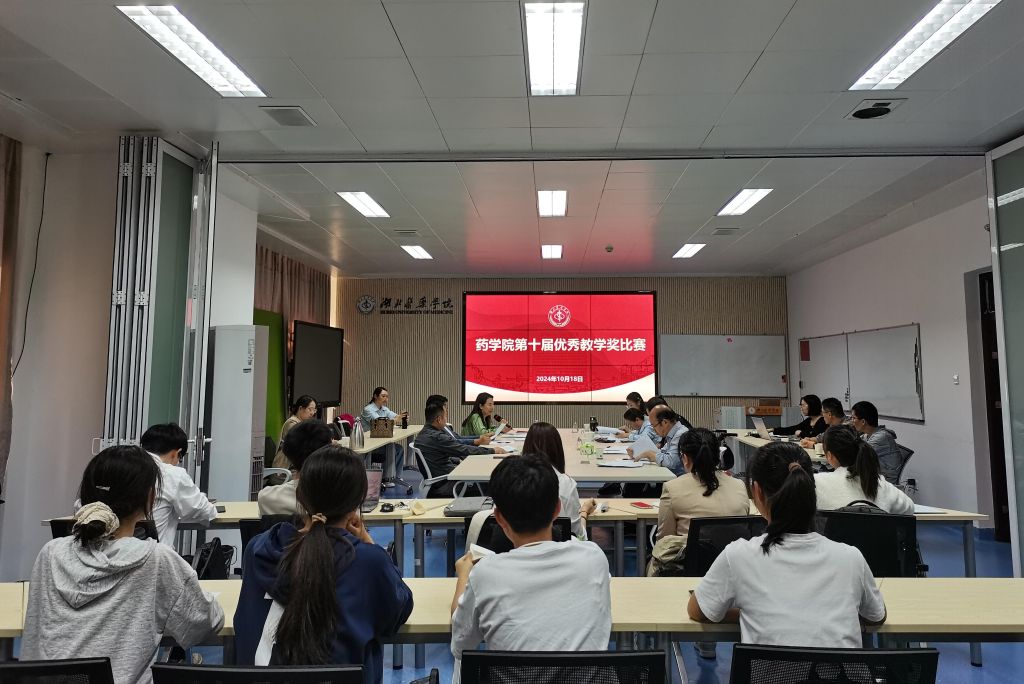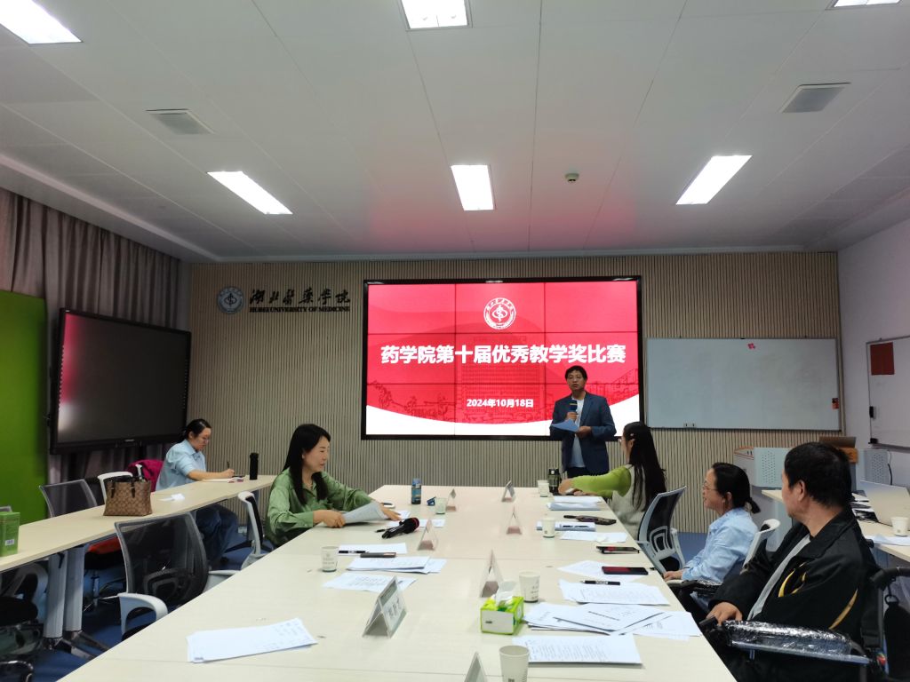 本网讯(通讯员 姚虔)为不断提升教师教育教学能力,太阳集团tyc33455于10月18日下午在教师发展中心107室举办了第十届优秀教学奖比赛。教学督导专家李文春、罗冬青,太阳集团tyc33455院长李飞、党委书记郝新才、专职组织员谢勇、药物制剂教研室主任朱海涛以及上届校级教学奖获得者何雪莱担任专家评委,另有10名药学专业本科生代表担任学生评委。