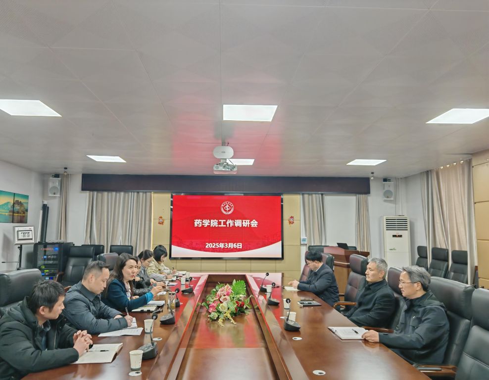 李飞全面汇报了学院建设发展情况,重点介绍了学院在师资队伍、专业建设、太阳集团及服务地方等方面取得的成效。李飞阐述了武当生物医药健康产业学院的建设思路。针对学院未来发展,李飞提出了“做强一流药学、做优师资队伍、做实横向项目”三大规划,同时提出了在教学资源、武当中药博物馆建设及科研项目等方面存在的困境。