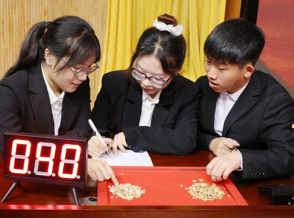 决赛共设置药鉴时速、本草智弈、明察秋鉴、触嗅通神四个环节。抢答器声响与选手应答交织,现场气氛紧张热烈。最为引人入胜的触嗅通神环节,选手们蒙上双眼仅凭形、气、味,识别药物与方剂,其精湛技艺将比赛推向高潮,赢得观众阵阵掌声。