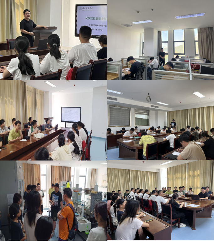 本网迅(通讯员 桂利利)为进一步加强实验室安全管理,强化学生安全意识,提升应急处置能力,营造良好安全的实验环境,7月4日下午,药学研究平台组织开展了暑期实验室安全教育培训会,科辅老师余惠凡、桂利利、吴正坤分别以安全知识课堂宣讲、实验室实地讲解安全隐患及预防措施、安全知识考核相结合的方式开展,全方位提升培训效果,为营造安全、规范的实验环境奠定了坚实基础。各实验室暑期留校研究生、本科生等35人参加了本次培训。