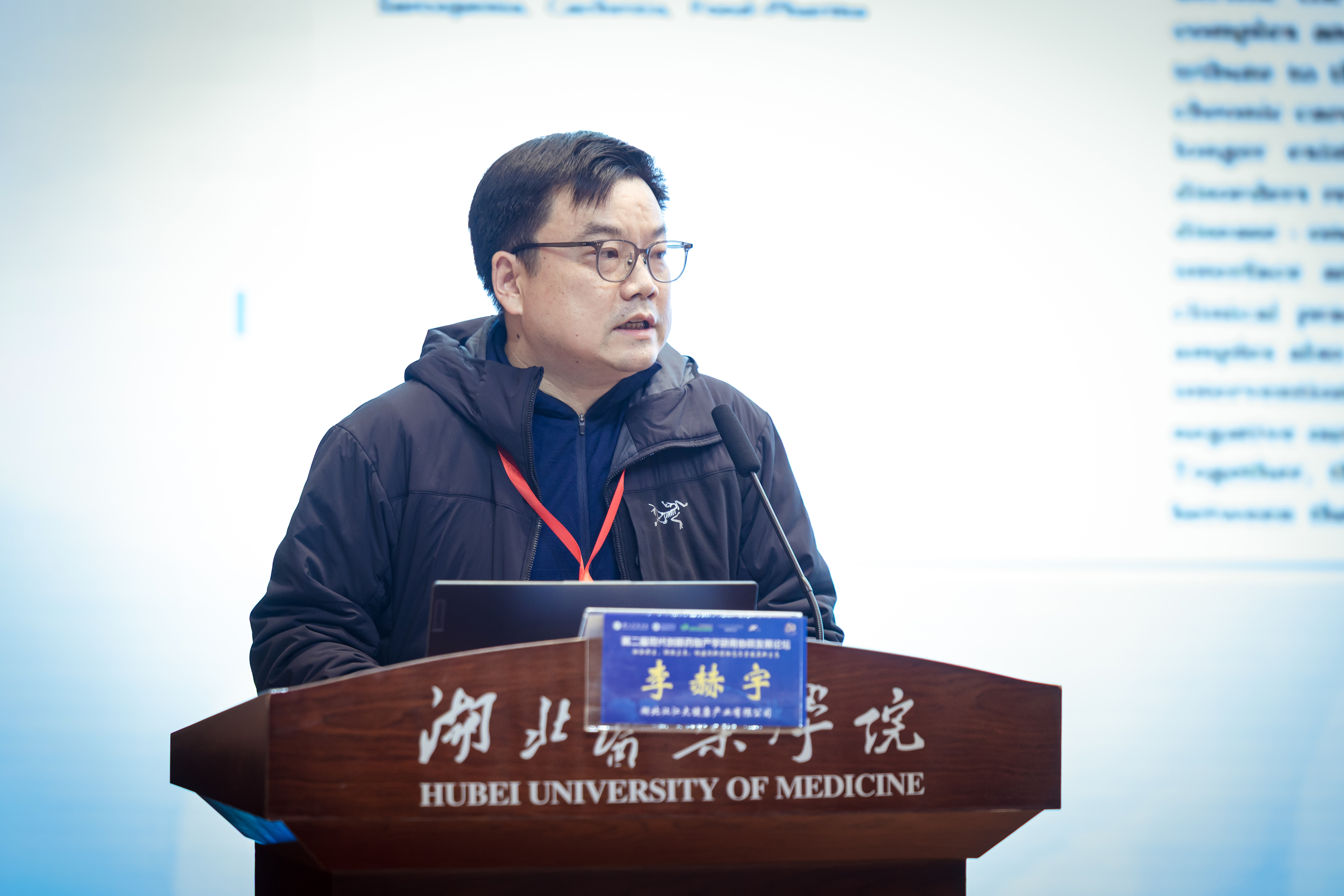 湖北汉江大健康产业有限公司董事长、湖北省产业教授李赫宇以“基于传统经方的药食同源大健康产品开发与产业化”为题介绍了公司基于传统经方开发药食同源产品的产业化路径,重点分享了其在天然成分萃取、生产线建设及特膳食品许可等领域取得的关键进展。
