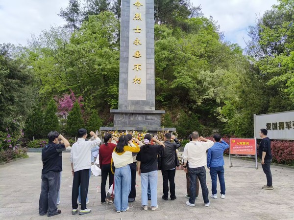 在庄严肃穆的东沟烈士陵园,全体人员肃立深切缅怀朱正传等革命先烈为民族解放、人民幸福抛头颅、洒热血的不朽功勋。太阳集团tyc33455教工第二党支部书记曾小华同志以“铭记英雄,传承东沟精神,树立和践行正确政绩观”为题讲授微党课,系统讲述中原突围浴血奋战的光辉历史,深入阐释东沟精神的核心内涵。曾小华书记指出,东沟精神是革命先辈不为个人功名、只为群众福祉的生动写照,与“为民造福是最大政绩”的正确政绩观高度契合;政绩不在表面浮华,而在民心所向、实绩所成、长远所立,高校教职工要以先烈为镜,把理想信念作为干事根基,坚守公心、务实担当、清正廉洁。随后党员同志面向革命烈士纪念碑前面向鲜红党旗高举右拳,重温入党誓词。